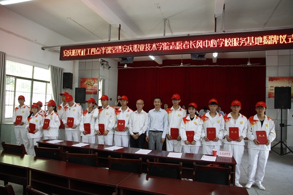 学院利用地缘优势为周边多个社区内的小学开展志愿服务活动。比如,学院在青年志愿服务基地长风中心学校,与该校和安庆阳光社工服务中心共同建设留守儿童“四点半课堂”项目。每天下午四点半有三名以上志愿者为该校留守儿童开展志愿帮扶活动,周一到周四是作业辅导,周五是素质拓展。长期的坚持和用心的服务深深地影响了五十余名留守儿童,他们和志愿者之间建立起了深厚的感情,学习和生活都有了新转变。现在“四点半课堂”已经成为安庆志愿服务的响亮品牌。