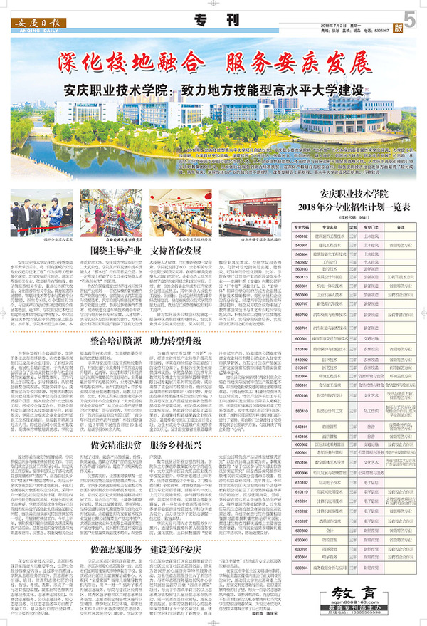 2016年,地方技能型高水平大学项目启动以来,8040威尼斯将“地方性”作为办学的重要属性来突出强调,办学定位更加明晰,办学目标更加明确。学院按照“立足地方、依靠地方、面向地方、融入地方、彰显地方特色、服务地方发展”的思路,从围绕主导产业调专业到校企合作育人才,从为企业提供技能型人才支撑到与县区政府开展全面战略合作,从加强中高职衔接到引领安庆职教集团化办学,从加强社会服务到助力精准扶贫,在深化产教融合与校企合作、服务安庆经济社会发展方面取得了较好成效。两年多来,学院与地方产业的融合度不断提升,改革发展迈上新航程,高水平大学建设风正帆悬,行稳致远。