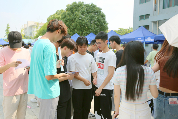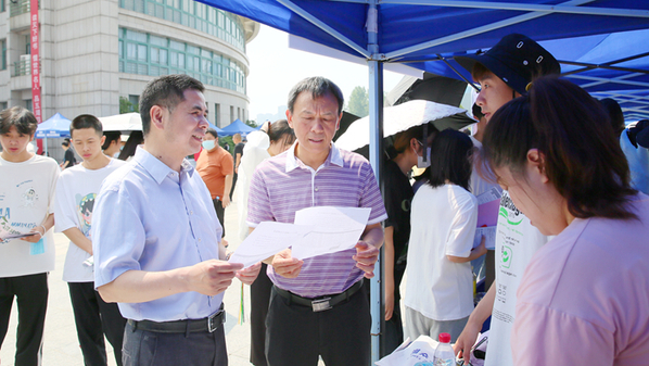 童宏葵等领导在现场与企业及同学们进行交流、询问,了解学生参与情况。双选会上,资格审核、展位引导、招聘咨询、后勤保障、志愿服务井然有序。同学们精心准备自荐求职材料,积极与用人单位交流,了解招聘流程、岗位需求、实习待遇等有关事宜。企业代表耐心、热情地解答学生的问题,活动现场氛围浓厚。