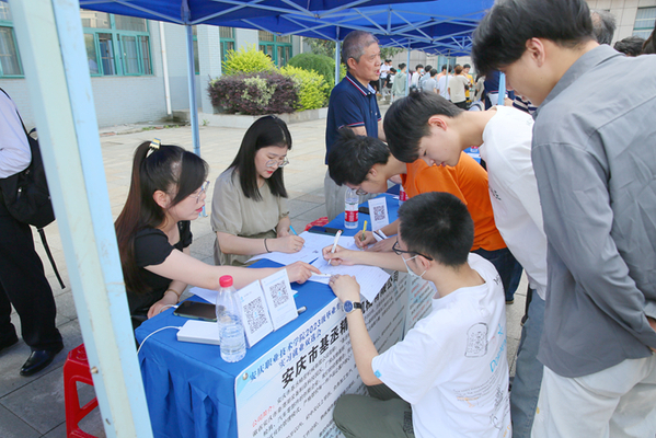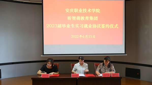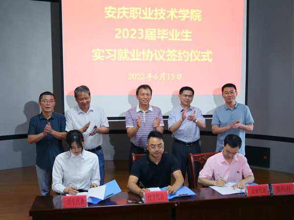 双选会上,安徽盈创石化检修安装有限责任公司、昕智萌教育集团、安徽云霁电子商务有限公司、安徽轩源建设工程有限公司等九家企业与六个二级学院及2023届毕业生代表进行了三方签约,签约实习生人数232人。江汽集团安庆分公司、振宜汽车有限公司、安徽威灵汽车部件有限公司(美的)等七家企业在图文一楼报告厅进行了现场宣讲。