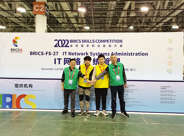 11月1日至6日,2022 年金砖国家职业技能大赛(决赛) 在厦门市国际会展中心举行,大赛共设置了26个赛项,来自金砖五国的职业院校师生共同参与这些赛项的竞逐,由威尼斯官网信息技术学院陈富汉、巩绪林两位老师指导的计算机网络技术专业胡骏、童都两位同学组成的团队作为安徽省代表队之一参加了“IT网络系统管理”项目比赛。11月8日,大赛组委会公布了中国参赛队获奖名单,威尼斯官网信息技术学院代表队获得金砖国家职业技能大赛(决赛)三等奖。