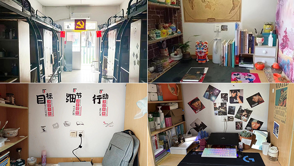 5月10日,信息技术学院党总支副书记带队对寝室进行现场观摩。有的寝室布置了带有星空的吊顶,将桌面贴上励志的桌面壁纸,在墙上贴了自己的画作。还有一些同学对寝室进行了红色文化建设,在墙上挂上了国旗和党徽;有的寝室张贴了马克思、恩格斯等共产主义伟人的照片,弘扬红色文化。有些寝室开展了读书分享、音乐欣赏等丰富的寝室生活内容。让人印象深刻的是6号楼242寝室,寝室规范有序,却又不乏艺术气息,当老师走进寝室时,寝室长带领室友们一起演奏起《New boy》,吉他弹奏动听,歌声优美,新颖的创意和奇妙的构想让观摩者切身感受到寝室的团结、友爱,温馨和舒适。
