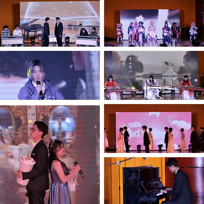 晚会在优雅的钢琴曲中拉开帷幕。一曲广为传唱的《江南》,带我们走入了缠绵的江南水乡,似见悠悠梦境流水小桥;相声《我的理想》为我们揭示了要实现理想就没有捷径的真理;礼仪协会带来的《模特走秀》展示了青春年华的飒爽风姿,引爆全场热烈掌声;黑暗中莹莹《微光》予我无尽勇气面对前路坎坷;古典舞《小城谣》仿佛看到小城归时,恰逢阳春三月天,各种风景遮人眼,孩童放纸鸢,城外山清水秀的一片优美景色;张涛同学带来的《瞬》,用温柔的声音勾起我们对记忆中美好瞬间的回忆,坚定了我们追梦的信念。
