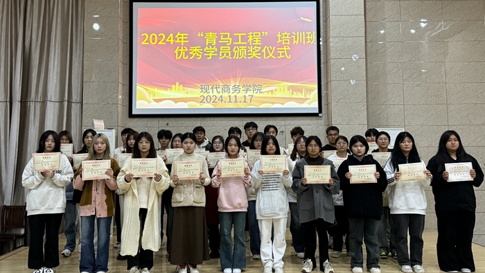 11月17日,青马培训优秀学员颁奖仪式于316教室隆重举行,此次仪式旨在表彰在“青马工程”培训中表现出色的学员。优秀学员们依次走上领奖台,他们展现出杰出的能力和素养,为商务学子树立了榜样。