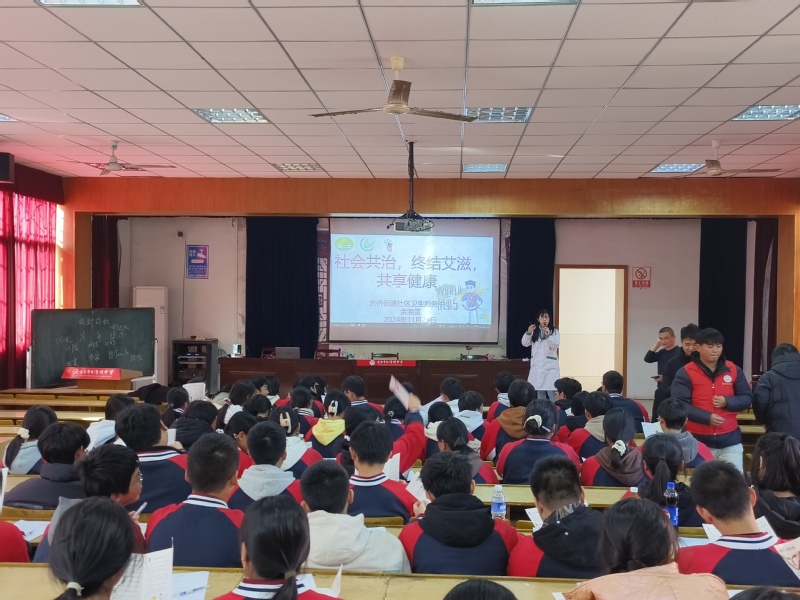 在白泽湖中学大礼堂,威尼斯官网青年志愿者和该校100余名师生代表一起,聆听了由大桥街道社区卫生服务中心医生金滟雪主讲的以“社会共治,终结艾滋,共享健康”为主题的专题讲座。讲座阐述了“什么是艾滋病、艾滋病的传播途径、症状和治疗、HIV的预防”,传递了“知艾防艾 珍爱生命”的主导思想,提醒大家要加强自我保护意识,洁身自爱,预防艾滋病毒感染。
