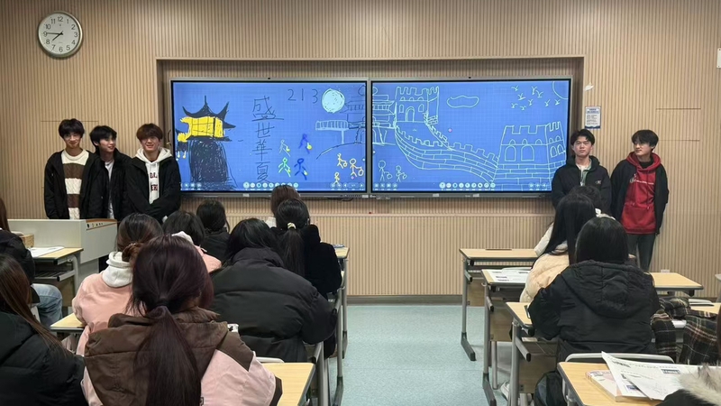 活动当晚,现场充满着创作的气息。同学们全神贯注,各显其能,画笔在电脑上尽情挥舞、线条与色彩相对应,一幅幅精致的作品很快就呈现出来了。有的以细致的笔触描绘出故宫的宏伟壮丽,古老的雕塑群尽显庄严;有的画出长城的雄伟壮观,那万里的长城仿佛在讲诉着过去的烽火岁月和今世的盛世太平;还有的将目光投向现代城市的高楼大厦、人行街道上的车水马龙以及人们幸福的笑容,展现出新时代中国的繁荣与活力。