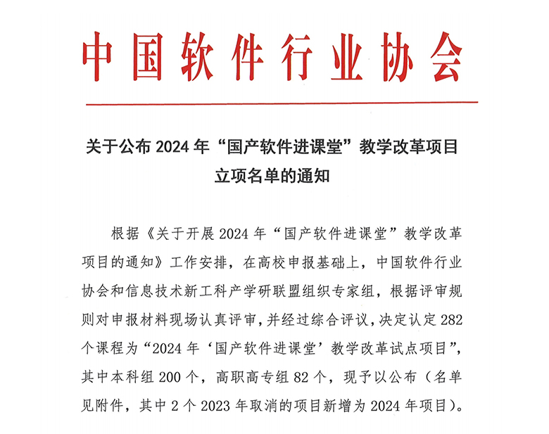 12月15日,中国软件行业协会公布了2024年度“国产软件进课堂”教学改革项目立项名单,威尼斯官网信息技术学院陈富汉老师负责的《Linux系统管理与服务(基于openEuler)》课程成功入选。