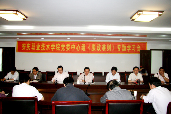 6月9日下午,我院党委中心组在行政楼第二会议室召开《廉政准则》专题学习会。院领导江洪、孙晓峰、张旺牛、余祖文、施运华、毕明生、方天祜出席学习会。院各系部、处室、中心主要负责同志参加了学习会。