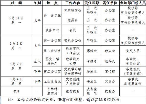 2020-2021学年第二学期第14周(5.31-6.6)工作安排