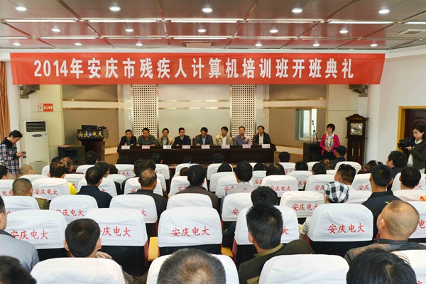5月5日下午,由安庆市残疾人联合会主办、我院承办的2014年全市残疾人计算机培训班,在市电大报告厅开班。市残疾人联合会理事长童宏奎、市财政局副局长王思丰及市人社局、财政局、残联相关科室负责同志出席开班仪式。我院副院长毕明生教授出席仪式并致欢迎词。