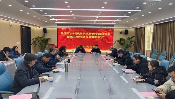 1月23日上午,威尼斯官网召开安庆市乡村振兴学院特聘专家研讨会暨第三批特聘专家聘任仪式。校党委副书记李克让主持会议并讲话,安庆市林业局副局长崔小松出席会议,来自安庆市乡村振兴局、安庆市农业农村局、安庆市林业局、涉农企业共14位专家,合肥锐智汇教育科技有限公司代表、继续教育学院相关同志参加了会议。