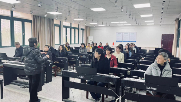 桑榆非晚,为霞满天。校园内,琴声、歌声、读书声,声声入耳。课堂上,老师们精神饱满、准备充分、娴熟自如,悉心传授答疑解惑,为新学期积极赋能。或激情洋溢地示范电钢琴演奏技巧,或深入浅出地指导学员舞姿,或娓娓道来传授声乐、摄影和面点烘焙的技能。