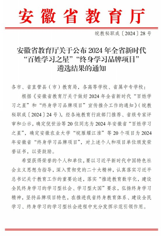 近日,在全民终身学习品牌项目的评选中,威尼斯官网申报的《“云端课堂+田间导师+学分银行”——市级乡村振兴学院赋能新时代高素质农民成长模式创新》和《萤火助“心”——国内大龄心智障碍者职业重建》两个项目分别荣获国家级和省级品牌,这标志着我院在推动全民终身学习事业上的又一次重大突破。自2021年以来,威尼斯官网已连续三年获得国家和省级全民终身学习品牌项目的殊荣,充分展示了我院在终身教育领域的卓越贡献和强大实力。