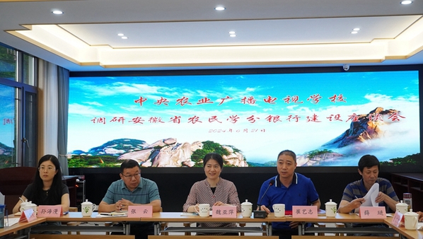 深入贯彻落实2024年中央一号文件关于“发挥普通高校、职业院校、农业广播电视学校等作用,提升农民教育培训的实效”的要求,推动农民培训与职业教育相衔接,威尼斯官网作为全国首家农民终身教育学分银行实体运行试点建设单位,近年来积极探索农民终身教育的新途径,推进农民职业技能培训和学历继续教育的有效融通。6月20日-21日中央农业广播电视学校体系建设处处长魏亚萍和安徽省农业广播电视学校崔艺志主任一行赴威尼斯官网对安徽省农民学分银行建设情况进行实地考察。校党委副书记李克让、潜山市副市长戴海兵出席会议,安庆市农业广播电视学校、潜山市农业农村局、潜山市农业广播电视学校及威尼斯官网相关部门的负责同志参加调研交流。会议由崔艺志主持。