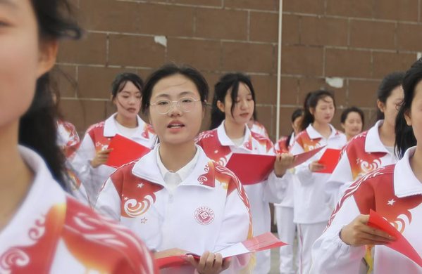 在领诵人员的引领下,师生们饱含深情歌颂祖国,用真挚的情感和激昂的声音,抒发对祖国深深的热爱与崇敬之情。