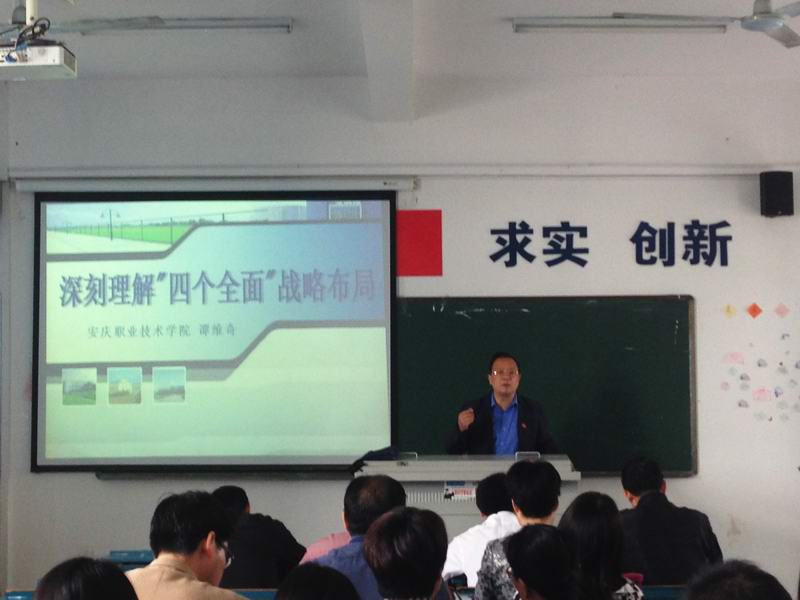 谭维奇副院长以《深刻理解“四个全面”战略布局》为主题,从“四个全面”战略布局提出的时代背景、彰显的时代意义、蕴含的时代内涵、赋予的时代要求四个方面,全面而详细的论述了“全面建成小康社会、全面深化改革、全面依法治国、全面从严治党是以习近平同志为总书记的党中央治国理政战略思想的重要内容,为推动改革开放和社会主义现代化建设迈上新台阶提供了强有力的保障。