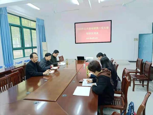 4月14号下午公共基础部第一支部在公共基础部会议室召开2020年度组织生活会。除2位党员教师因上公开课、学校会议没有参加,其余党员教师都参加本次组织生活会。