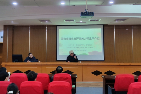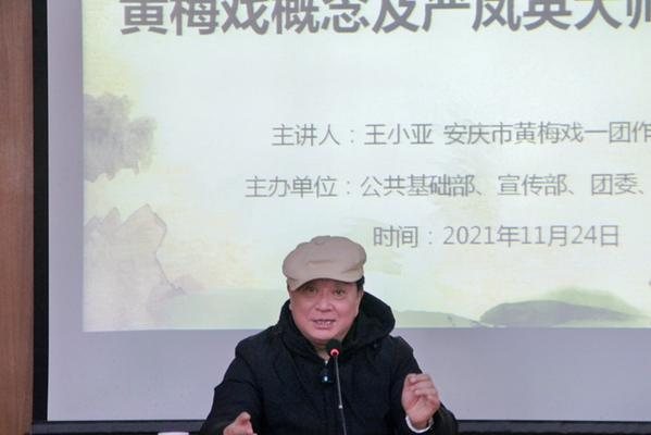 11月24日下午,由威尼斯官网公共基础部、宣传部、团委、校体艺委联合主办的专家进校园“美育”系列专题第二场讲座在图文信息中心三楼报告厅举行。本次邀请到了安庆市黄梅戏一团作曲指挥、黄梅戏大师严凤英之子王小亚做题为《黄梅戏概述及严凤英大师生平介绍》的讲座。出席本次活动的老师有公共基础部党总支书记张林主任,校办公室李三平副主任以及艺术教研室和对艺术感兴趣的老师们,管理服务学院、建筑工程学院200名学生代表到场聆听,全校师生通过云犀网上直播观看,讲座由音乐课程负责人梅文斌老师主持。