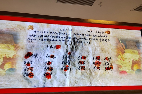 党员同志们参观大包干纪念馆,看揭开中国农村改革序幕的十八颗农民红手印,展馆共分溯源、抉择、巨变、崛起、关爱等5大部分,通过实地走访,全面了解大包干发生、发展的历程;全面了解沈浩先进事迹,沈浩成长、学习、工作、三留小岗、长眠小岗等真实情景,沈浩朴实的生活作风、扎实的工作作风、严格的纪律作风,学习沈浩精神。整个展馆庄严肃穆、简朴典雅,整个陈列馆用雕塑、图片、文字、音像叙述了中国改革开放史。