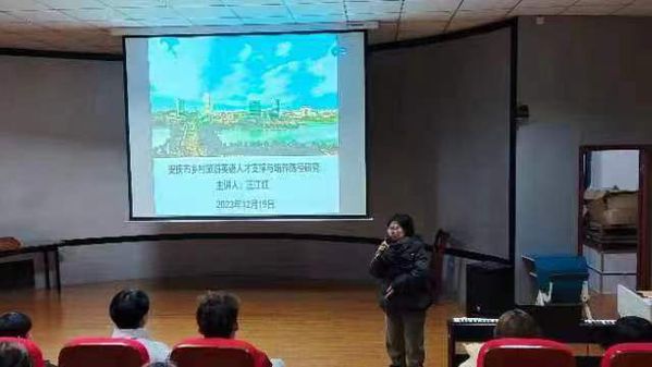 12月19日晚上7点,由科技处主办、公共基础部承办的“行知讲堂”系列讲座在三号教学楼216多媒体教室举行。讲座题为《安庆市乡村旅游英语人才支撑与培养路径研究》,由威尼斯官网的省级优秀双师型教师汪江红副教授主讲,威尼斯官网管理服务学院以及现代商务学院的150余名学生参加,讲座由公共基础部教学管理人员叶玫老师主持。