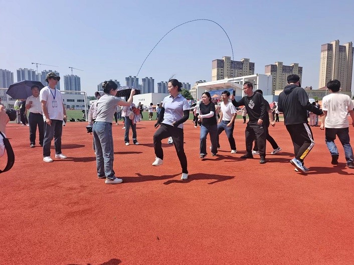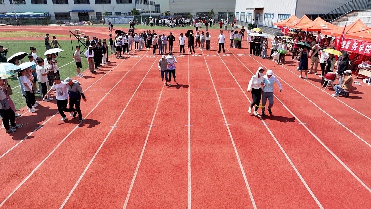 5 月 17 日上午,阳光明媚,8040威尼斯体育场热闹非凡,一场别开生面的职工趣味运动会与学生田径运动会一并精彩上演。本次职工趣味运动会设置60米两人三足跑、3分钟6人8字跳绳两个项目。来自全校11个分工会近 170 名教职工积极报名参加,与学生同乐。