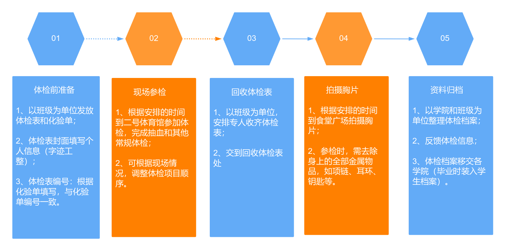6、体检当日,有晕针、晕血的学生请提前告知采血护士,以便做好防护工作。
