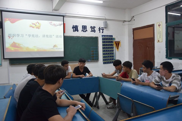 为认真贯彻落实教育部《青少年法治教育大纲》,推动青少年学生宪法宣传教育活动广泛开展,自觉学习好、宣传好、贯彻好、实施好《中华人民共和国宪法》,深刻领会习近平新时代中国特色社会主义思想的指导地位,学院特组织各系部团总支开展“学宪法,讲宪法”系列活动。