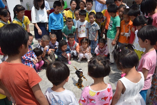 6月15日,“青春机电,科技扶贫”项目团队在系学生工作负责同志和系团总支书记带领下,前往望江县虎山村小学开展活动。“青春机电,科技扶贫”项目团队向虎山村小学同学详细讲解了我系学生自制的环保科技作品,讲述制作科技作品的目的,制作的方法,期间遇到的困难以及解决途径。鼓励同学们要学好基础知识,将来为科技发展贡献力量。