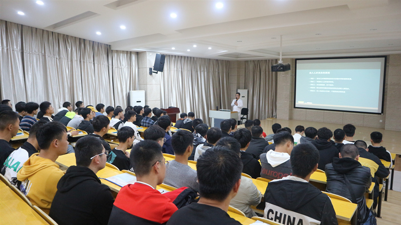 活动期间,学院还分批组织各班参加新生疫情防控专题宣讲报告会,报告会由中国医科大学生物医学硕士、传染病教育金牌教师宁彩俊主讲。宁彩俊从“如何认识新冠肺炎”、“怎样做好个人防护”、“常见的传染病”等三个方面深入浅出地进行讲解。他提醒大家要以“防”为主,注意在“传染源、传染途径、易感人群”等几个方面做好最有效的防护,保持健康,珍视生命。