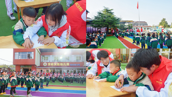 第一支志愿小分队来到罗岭火炬幼儿园,开展主题为“快乐童年,大手牵小手”的社会实践活动。活动的第一个环节是举行升旗仪式,由院学生组成的国旗护卫队迈着整齐划一、铿锵有力的步伐,护卫着鲜艳的五星红旗入场,伴随着雄壮的国歌,五星红旗冉冉升起,小朋友们个个昂首挺胸,向国旗行注目礼。升国旗仪式是爱国主义教育的重要途径之一,通过此仪式,增强了幼儿热爱国旗的意识,萌发了幼儿的爱国主义情感。随后,志愿者们在幼儿园老师的指导下,分组开展了实践活动。如“小小黏土创意无限”儿童手工活动、读书分享活动、防火防溺水安全教育、指导留守儿童给远方父母写一封亲情书信等活动,孩子们脸上洋溢着愉悦的笑容,这份快乐感染了现场的每一位参与者,整个活动过程中孩子们的欢声笑语久久回荡在校园。