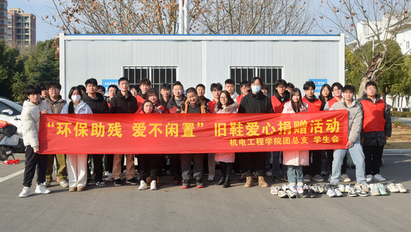 为深入学习贯彻习近平总书记关于残疾人事业的重要论述、重要指示批示精神,积极响应安庆市残疾人联合会、安庆市总工会、共青团安庆市委员会、安庆市妇女联合会等单位提出的“有爱•无碍”志愿助残倡议,进一步引导同学们尊重、关心、帮助残疾人,2024年1月11日下午,机电工程学院在校食堂广场开展“环保助残•爱不闲置”闲置鞋爱心捐赠活动,安庆市慧灵心智障碍人士扶助中心工作人员、院团总支学生会志愿者共同参加此次活动。