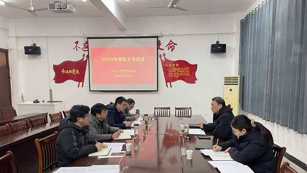 1月22日下午,机电工程学院党总支在1号教学楼208会议室召开2023年度主题教育专题民主生活会。校党委书记童宏葵参加指导。会议由院党总支书记刘磊主持。院党总支全体成员参加会议。