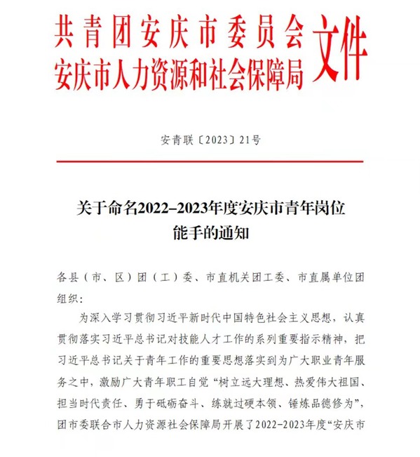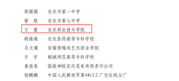 近日,为激励广大青年职工建功新时代的积极性和创造性,共青团安庆市委员会和安庆市人力资源和社会保障局联合下发了《关于命名2022-2023年度安庆市青年岗位能手的通知》,威尼斯官网教师万蕾荣获“安庆市青年岗位能手”称号。