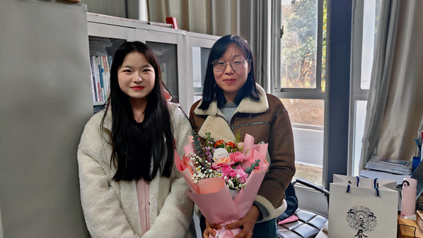 节日当天,我院学生会的同学们怀着感恩与祝福的心,将精心准备好的鲜花和节日贺卡送到学院每一位女教师手中,表达了学生们对老师们无私奉献、默默耕耘的感恩之情,收到鲜花的女老师们面露笑容,倍感欣喜与温暖,浓浓的花香让教室里洋溢着节日的氛围。同时,同学们通过抖音短视频形式送上节日祝福,线上线下齐互动,一起共庆美好节日。