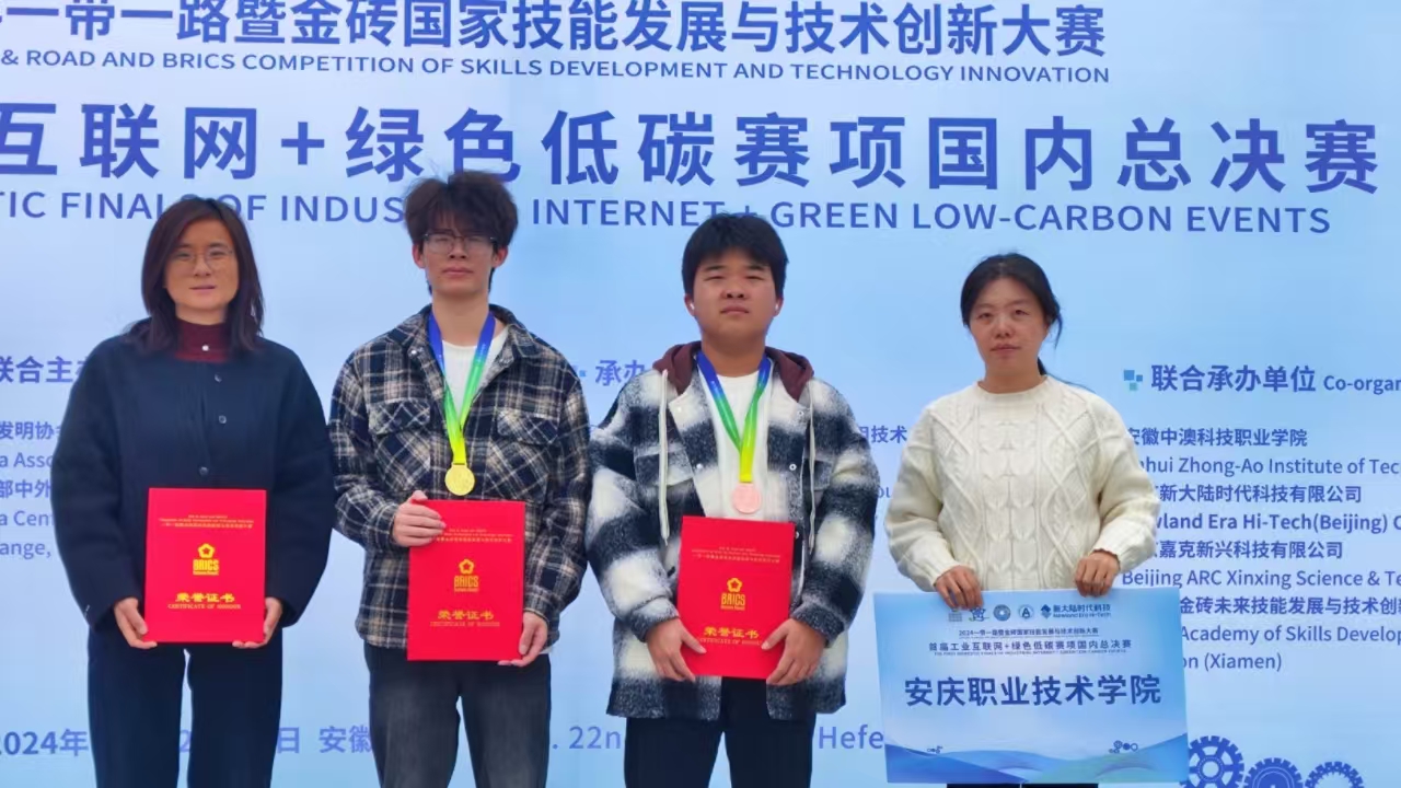 11月24日,在刚刚落下帷幕的2024“一带一路”暨金砖国家技能发展与技术创新大赛首届工业互联网+绿色低碳赛项国内决赛中,机电工程学院工业机器人技术专业的学子们不负众望,凭借出色的专业技能和创新精神,在全国众多优秀队伍中脱颖而出,斩获了令人瞩目的成绩。