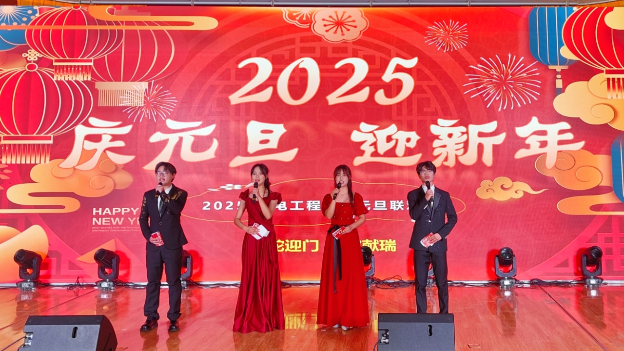 祥龙回首辞旧岁,金蛇起舞迎新年。为庆祝即将到来的2025年元旦佳节,丰富校园文化生活,12月18日晚,机电工程学院在图文信息楼一楼报告厅举办了2025年元旦迎新晚会,本次晚会采用线上线下同步直播的方式,在辞旧迎新之时欢聚一堂,共同迎接新一年的到来。院党总支副书记徐英武、副院长吴福贵、专兼职辅导员与同学们共渡这美好时光。