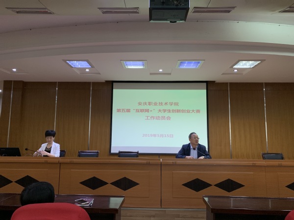 为进一步激发我院学生创新创业热情,展示创新创业教育成果,我院积极组织参加第五届中国 “互联网+”大学生创新创业大赛暨2019年安徽省“青年红色筑梦之旅”活动。为使大赛活动取得预期成效,5月15日,我院在图文三楼报告厅召开第五届 “互联网+”大学生创新创业大赛暨2019“青年红色筑梦之旅”活动动员会。各系部副科级以上人员,各专业建设负责人、教研室主任、实验实训室主任、团队骨干教师,创业培训教师,承担就业指导课程教学任务的教师,各专兼职班主任、辅导员,院“互联网+”双创大赛办公室人员,教务处、招就处、学生处(院团委)工作人员参加会议。
