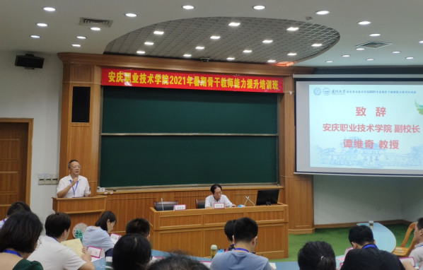 7月24日,威尼斯官网2021年暑期骨干教师能力提升培训班在厦门大学开班。校党委委员、副校长谭维奇出席开班典礼并致辞,校党委委员、办公室主任沈良生,人事处、教务处等部门负责人,以及来自学校各教学院部的骨干教师,共计38人参加开班典礼。厦门大学教师发展中心教学指导委员会主任朱水涌出席开班典礼并致欢迎辞。
