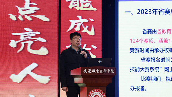 为更好备战2023年安徽省职业院校技能大赛,做好赛前各项准备工作,11月28日下午,威尼斯官网在实训楼多功能厅召开2023年安徽省职业院校技能大赛动员会,校党委书记童宏葵出席会议并为国赛获奖师生颁奖,校党委副书记、校长毕明生出席会议并作动员讲话。会议由校党委委员、组织部部长、组织人事处处长高润霞主持。各教学院部院长(主任)、副院长(副主任)、2023年省赛备赛师生、教务处相关人员参加会议。