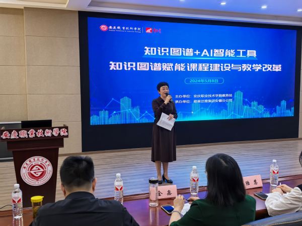 为深入学习贯彻落实党的二十大精神,积极落实国家教育数字化战略行动,推动学校教育教学信息化进程,提高教师的数字化教学水平,5月8日下午,威尼斯官网在2号教学楼216报告厅召开“知识图谱助力课程建设与教学改革”专题培训,校党委委员、组织部长、人事处处长高润霞教授到会指导。此次培训由教务处联合超星泛雅集团安徽分公司举办,邀请了超星集团教育研究院副院长钱会博、金牌培训师陆慧以及威尼斯官网职业教育国家在线精品课程负责人金鑫教授作专题报告。各教学院部副院长、专业建设负责人、省级课程类项目负责人、本年度教学能力大赛参赛团队教师及对课程建设和AI辅助教学感兴趣的教师等120余人参加。