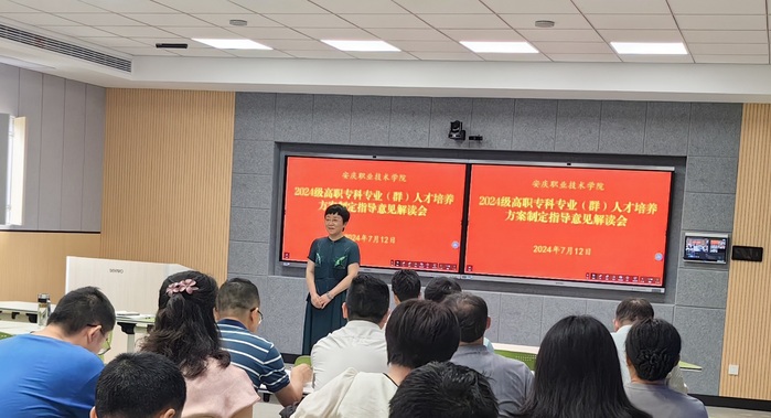 会上,教务处相关负责人分别就2024年人才培养方案制定指导意见展开了详尽的阐述,并对人才培养方案制(修)订工作的进度及制定步骤作出了安排。他们从指导思想、编制原则、专业建群、主要内容、制定流程、组织实施、模版实操以及课程进程表等多个方面进行了全方位、深入细致的介绍。通过清晰明了的讲解,使与会的专业建设负责人对人才培养方案的制定有了更全面、更准确的理解,为后续科学合理地编制人才培养方案提供了有力的指导。