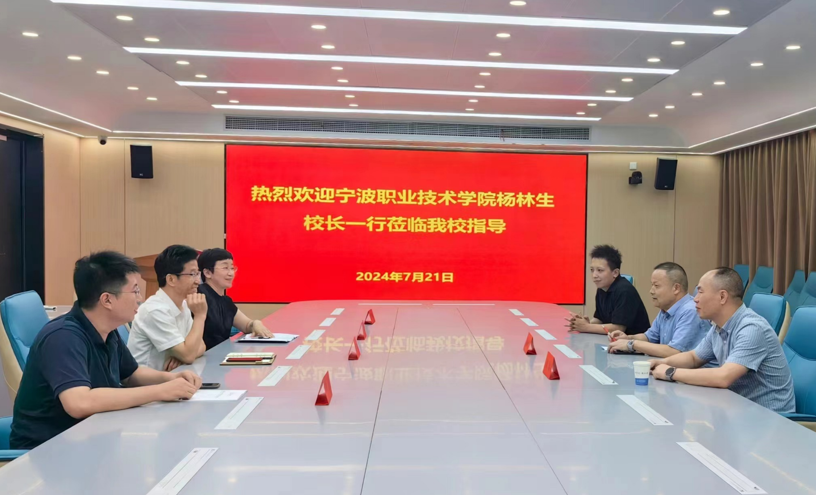 7月21日上午,宁波职业技术学院党委委员、副校长杨林生,职业教育教师培训学院院长曹勃等一行来威尼斯官网考察交流。在综合办公楼425会议室,校党委副书记、校长毕明生主持交流座谈会并讲话,校党委委员、组织部部长、人事处处长高润霞及教务处相关负责人参加了交流会。