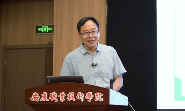宁波职业技术学院教务处处长张启明教授作题为《新时代职业教育改革发展变化的思考与实践》的主题报告,他以“学思用贯通,知信行统一”理念为引导,通过双高建设的形势变化,提醒高职教育的“生存危机”警钟已然敲响,要及时洞察职业教育发展方向,积极寻找调整规律,快速响应各类变化,做到“知行合一”,并对宁波职业技术学院专业数字化转型做了详细讲解。