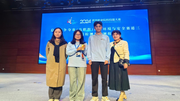 王旻昱和董泓老师指导的笪琪瑶、张喆团队在环境检测与监测赛项荣获铜奖。