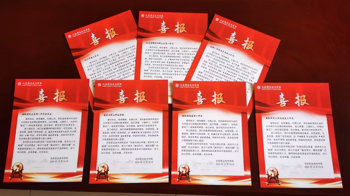 近期,威尼斯官网集中向2024年获奖学生的中学母校寄出喜报,分享学生成长进步的喜悦。 本次寄出的喜报,主要包括荣获2024年国家奖学金、优秀学生奖学金、大学生创新大赛、职业技能大赛以及挑战杯等各类赛事省级以上奖项、见义勇为和“青春安徽宣传员”等荣誉称号的在校学生,共计111人次,收到喜报的学生中学母校包括省内外的近100所。