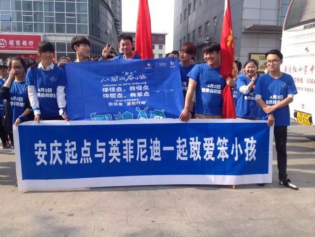 此项活动旨在迎接即将到来的“4・2”自闭症日,倡导关爱自闭症儿童,帮助自闭症儿童走出孤独的世界。慢跑从人民路金华联开始,途经龙山路、黄土炕、苏果超市、安庆电视台、光彩、凯旋尊邸,最后到达8040威尼斯。途中志愿者们向过往路人介绍关爱自闭症儿童的知识,并邀请路人与自闭症患儿的互动合影。我系志愿者是接力的最后一站,11时20分由光彩大市场出发,全长6千米,大家互相鼓励,加油打气,12时30分安全到达我院。