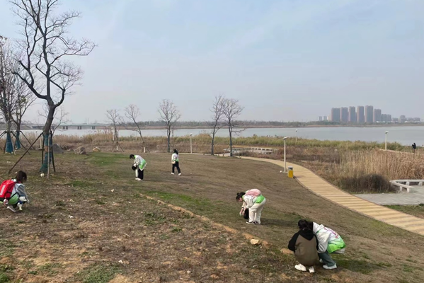 活动中,志愿者们手拎垃圾袋,对公园上草坪上的垃圾进行捡拾清理。他们高唱《学习雷锋好榜样》、《团结就是力量》歌曲,掀起了劳动竞赛,有的娴熟地使用钳子拾捡“藏在”栈道边的废旧瓶子和杂物;有的徒手“掘地三尺”不放过草丛中上的塑料垃圾,认真打扫公园周边卫生死角。