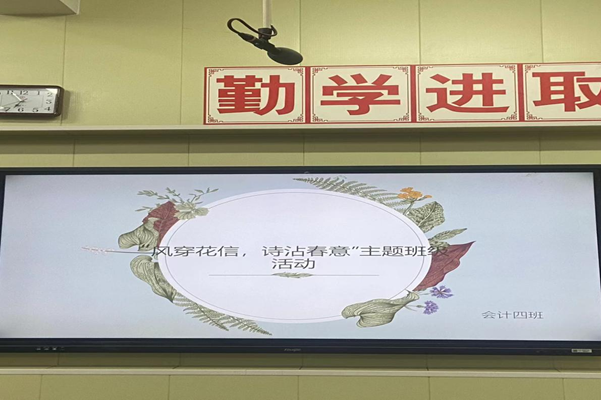 为弘扬中华传统诗词之美,促进中华传统文化的传承。3月26日晚,22级大数据与会计四班开展以“风穿花信,诗沾春意”为主题的班级活动。