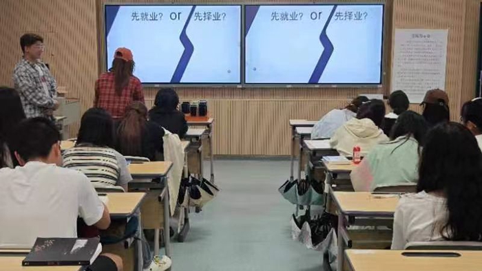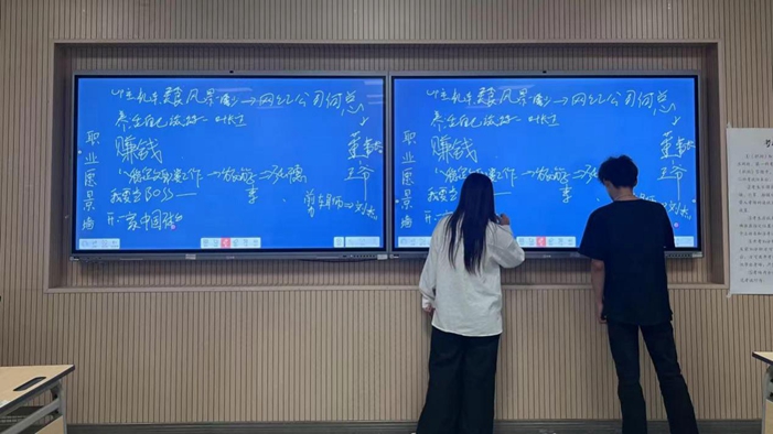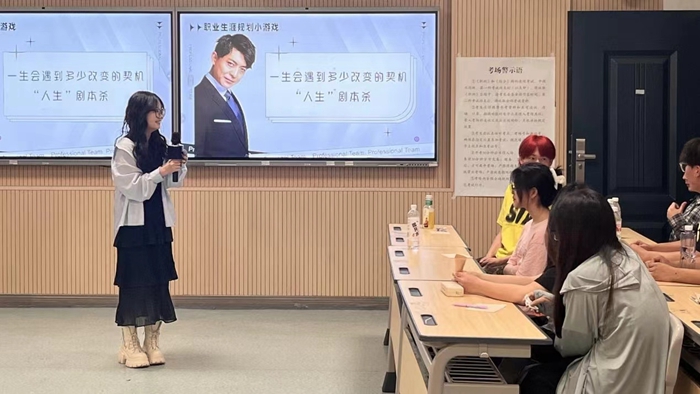 活动伊始,组织者通过MBTI 职业性格测试分析了同学们的性格特点和职业倾向。这一环节让同学们对自己有了更深入的认识,也为后续的活动奠定了基础。随后,为了更好地体验“规划”的意义,并提高同学们的积极性,组织者带领同学们开展了趣味游戏——人生剧本杀。同学们通过扮演不同的角色,体验了不同的职业和人生经历。在游戏中,同学们更加深入了解了职业规划的重要性。接着,同学们就“先就业还是先择业”展开讨论。活动最后,同学们纷纷在职业愿景墙上留下自己的远大理想和未来规划。