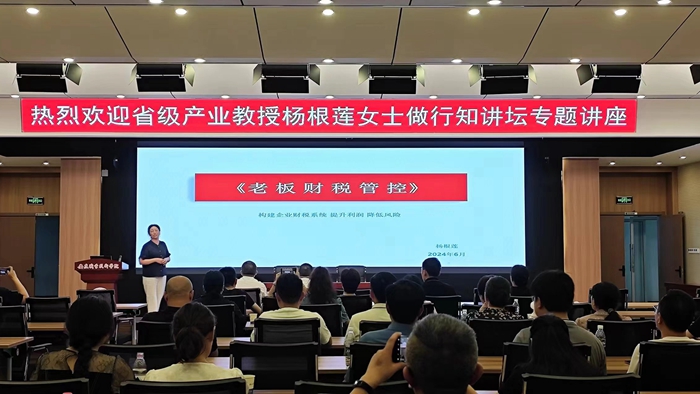 6月16日下午,现代商务学院邀请威尼斯官网特聘的省级产业教授杨根莲女士,在学校图文三楼学术报告厅做《2024年税法改革和企业财税风险解读》专题报告,现代商务学院教师共计50余人参加学习,讲座由该院分管教学负责人主持。